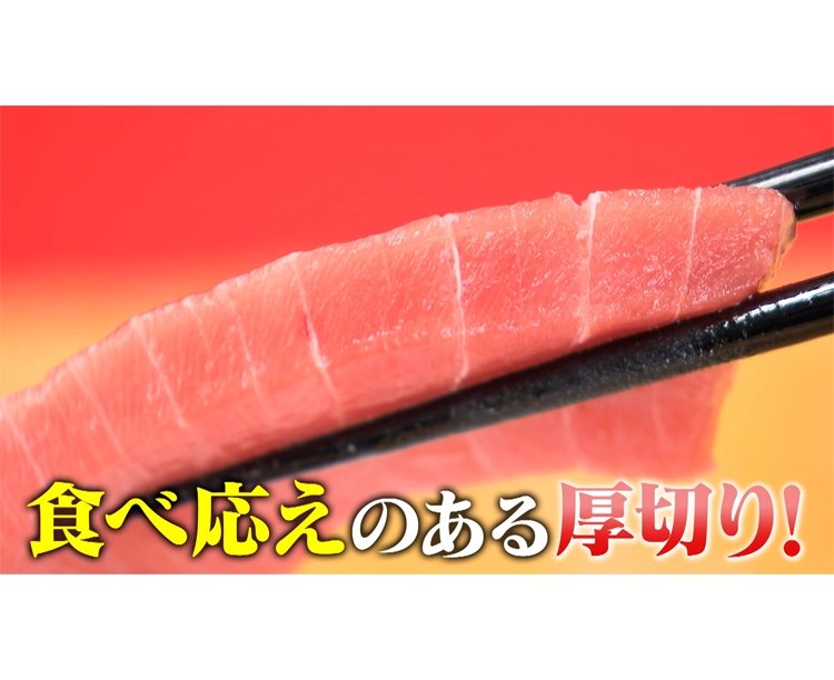 赤身と中トロの切り落としが500g。なんと中トロがおよそ50%も入った特別仕様に加えて食べ応えも十分な厚切りカットなのでまぐろ本来の味をお楽しみいただけます。